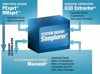 可以將電磁仿真工具ANSYS Maxwell 2D/3D、ANSYS RMxprt、ANSYS PExprt、ANSYS Q3D Extractor 計算得出的電氣設備、變壓器、電機、母排等設備的特性很容易地導入到ANSYS Simplorer 中。另外,ANSYS Simplorer 也可以導入ANSYS Mechanical、ANSYS Icepak等結構、熱、流體軟件計算的模型,可以同時分析電路、磁場、結構、熱。