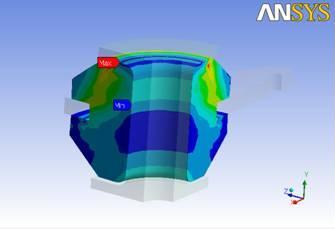 ANSYS的VT技術可以加快循環對稱結構模態的計算速度,尤其是要求有大量的諧波指數時。像在諧響應分析中的掃頻方法也得益于VT技術。一般獲得到的加速比在3到10之間。采用相同的原理,瞬態熱分析和非線性結構瞬態問題的某些類別在較短的時間也可以計算出分析結果。