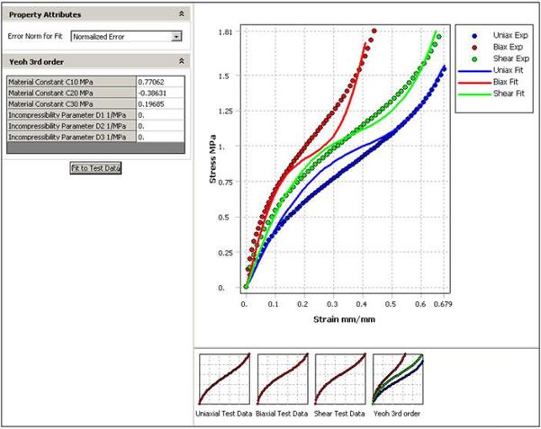 ANSYS提供了一個廣泛的數學材料模型庫,以幫助用戶模擬各種材料的力學行為,如彈性、粘彈性、塑性、粘塑性、鑄鐵塑性、蠕變、超彈性、墊片和各向異性。這些本構模型可以用來模擬各種材料,如金屬、橡膠、塑料、玻璃、泡沫、混凝土,生物組織和特殊合金材料。另外,ANSYS提供了一套曲線擬合工具,從而有助于獲取這些材料模型的參數。