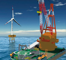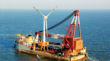 2007年11月28日,地處渤海遼東灣的中國海上風力發電站正式投入運營。這是第一個專為海上油氣田供電的風電站,該風力發電站 的安裝工程由中國海洋石油工程安裝公司設計完成。銳和技術服務人員現場支持協作了1年,見證了這項偉大的節能減排綠色工程的成功。
